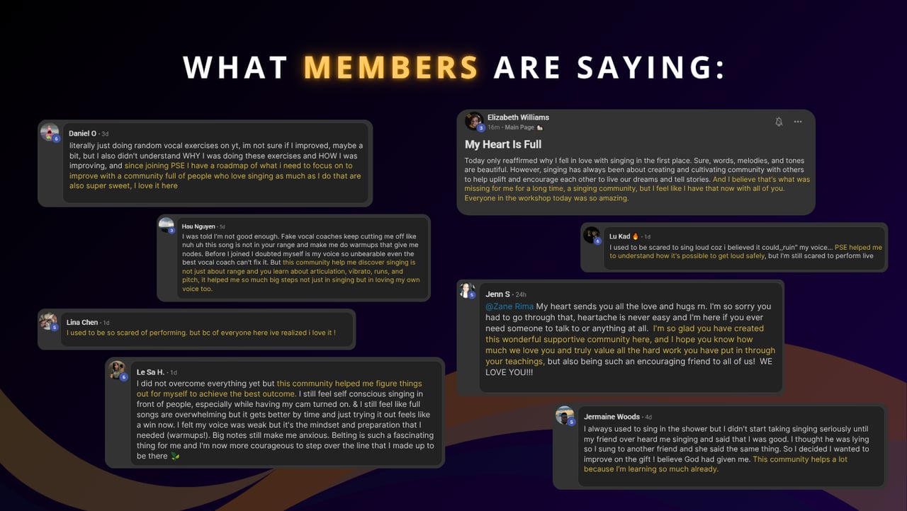 We give you the best resources to transformation your voice and confidence with weekly live lessons with our compassionate & expert Vocal Coaches, and our supportive community of aspiring singers.